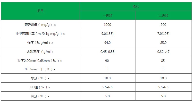 木質(zhì)粉狀活性炭技術(shù)指標(biāo):