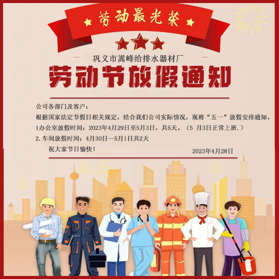 1辦公室放假時間:2023年4月29日至5月3日,共5天。(5月3日正常上班.)